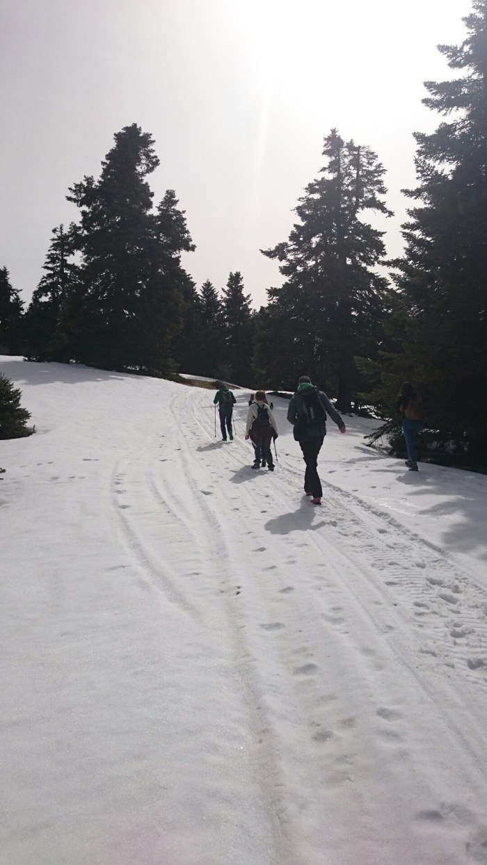 Την 1η ημέρα πραγματοποιήθηκε πεζοπορία στο χιόνι μέχρι την κορυφή πηργάκι στα 1700 μέτρα υψόμετρο.