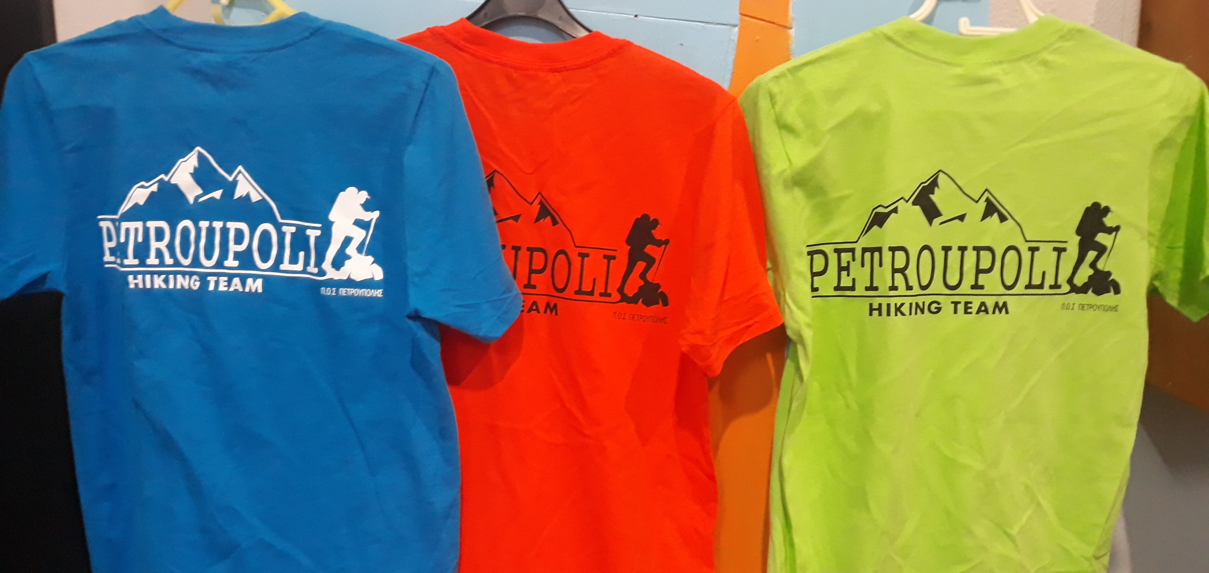Ενημερώνουμε τα μέλη και τους φίλους του Συλλόγου ότι μπορούν να προμηθευτούν τα καινούργια μπλουζάκια του Συλλόγου “Petroupoli Hiking team” (σε τρία χρώματα) με 10€.