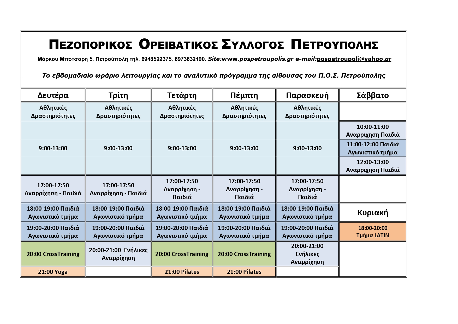 Ξεκινάνε την Δευτέρα 5 Σεπτεμβρίου οι εγγραφές και οι προπονήσεις στα τμήματα του Πεζοπορικού Ορειβατικού Συλλόγου Πετρούπολης.