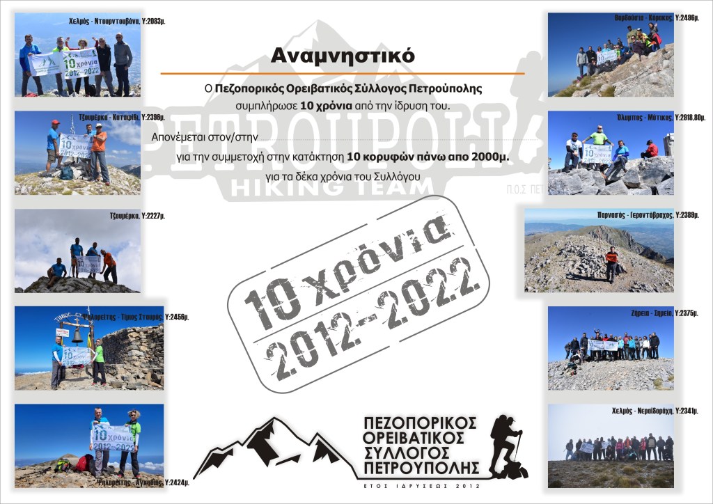 10 χρόνια Πεζοπορικός Ορειβατικός Σύλλογος Πετρούπολης