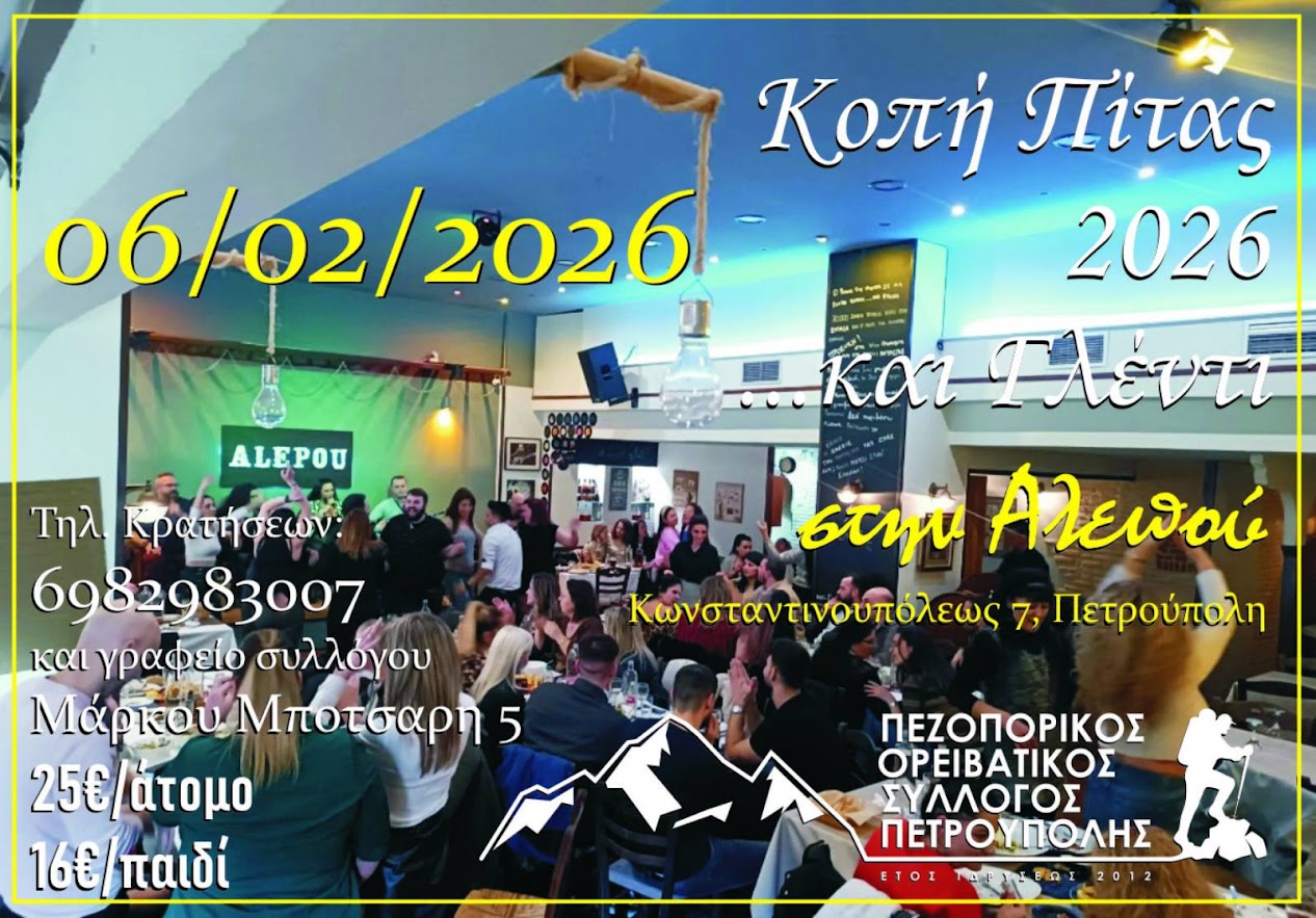 Κοπή της Πρωτοχρονιάτικης Πίτας του Πεζοπορικού Ορειβατικού Συλλόγου Πετρούπολης την Παρασκευή 6 Φεβρουαρίου.